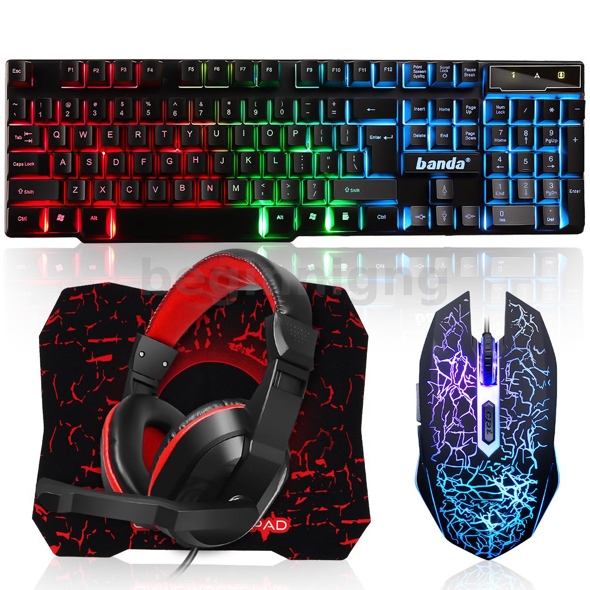 Gaming Keyboard and Mouse and Mouse pad and Gaming Headset, Wired LED RGB Backlight Bundle